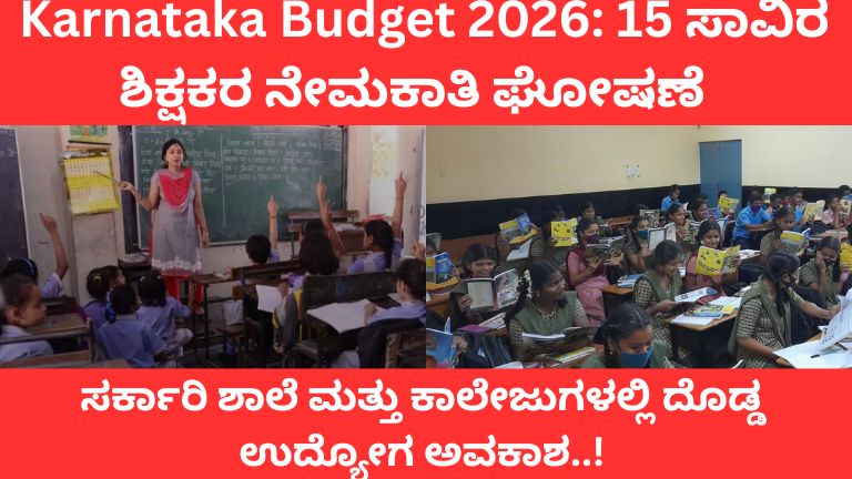 Karnataka Budget 2026: 15 ಸಾವಿರ ಶಿಕ್ಷಕರ ನೇಮಕಾತಿ ಘೋಷಣೆ – ಯುವಕರಿಗೆ ದೊಡ್ಡ ಉದ್ಯೋಗ ಅವಕಾಶ ಕರ್ನಾಟಕ ಸರ್ಕಾರವು ರಾಜ್ಯದ ಶಿಕ್ಷಣ ವ್ಯವಸ್ಥೆಯನ್ನು ಮತ್ತಷ್ಟು ಬಲಪಡಿಸಲು …