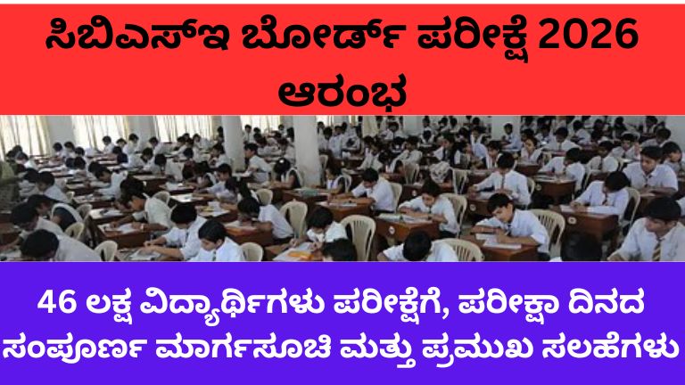ಸಿಬಿಎಸ್ಇ ಬೋರ್ಡ್ ಪರೀಕ್ಷೆ 2026 ಆರಂಭ: 46 ಲಕ್ಷ ವಿದ್ಯಾರ್ಥಿಗಳು ಪರೀಕ್ಷೆಗೆ, ವಿದ್ಯಾರ್ಥಿಗಳಿಗಾಗಿ ಸಂಪೂರ್ಣ ಮಾರ್ಗದರ್ಶಿ ಭಾರತದ ಅತ್ಯಂತ ಪ್ರಮುಖ ಶಿಕ್ಷಣ ಮಂಡಳಿಗಳಲ್ಲೊಂದಾದ Central Board of …